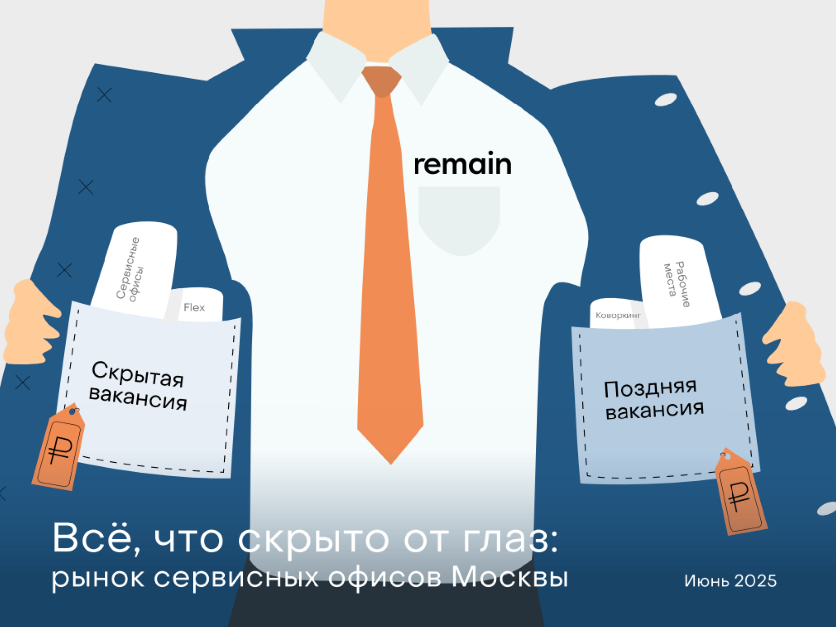Аналитики Remain изучили структуру вакансии на рынке сервисных офисов Москвы. На июнь 2025 года доля вакантных рабочих мест в открытых спекулятивных площадках, с доступными к аренде сейчас рабочими местами, составляет 5,2% (2,5 тыс. рабочих мест). Однако при более глубоком анализе выяснилось, что значительный объем дополнительного предложения не маркетируется на открытом рынке, но доступен за счет скрытой вакансии — потенциально освобождаемых блоков под крупного клиента, а также поздней вакансии — рабочих мест, которые станут доступны к заезду после окончания договора текущего арендатора. Суммарно эта невидимая вакансия существенно меняет картину: вместо официально экспонируемых 5,2% доступных рабочих мест потенциальным пользователям сервисных офисов фактически готовы предложить в 2,5 раза больше различных вариантов – 14,3% (7,0 тыс. рабочих мест).